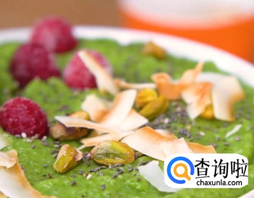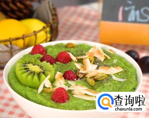 菠菜叶,泥猴桃,青苹果,熟山药,酸奶,椰子片,开心果,奇亚籽,蜂蜜