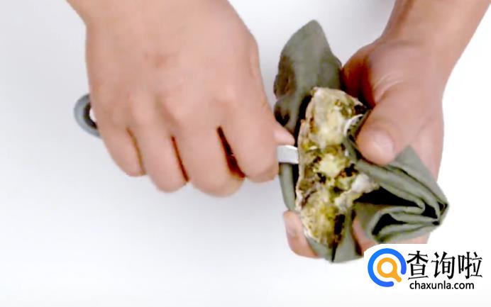 接着,用刀锋快速地划向侧边,用力将其撬开。