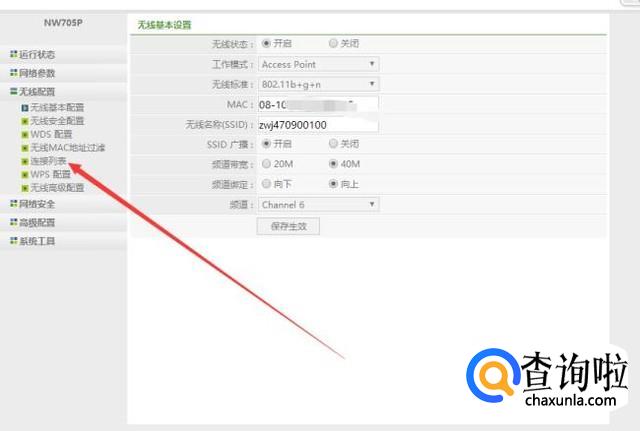 在无线配置下面就会出现很多的无线配置的选项,点击下面的连接列表,进入无线连接列表查看页面。