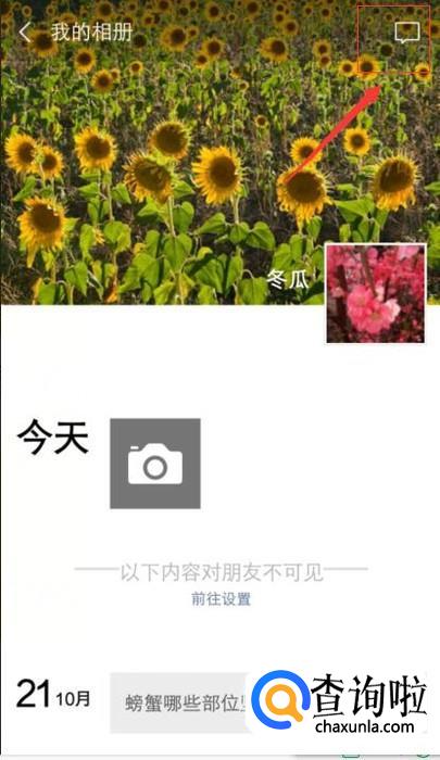 进入到自己的朋友圈,点击屏幕最有上方图像,如下图;