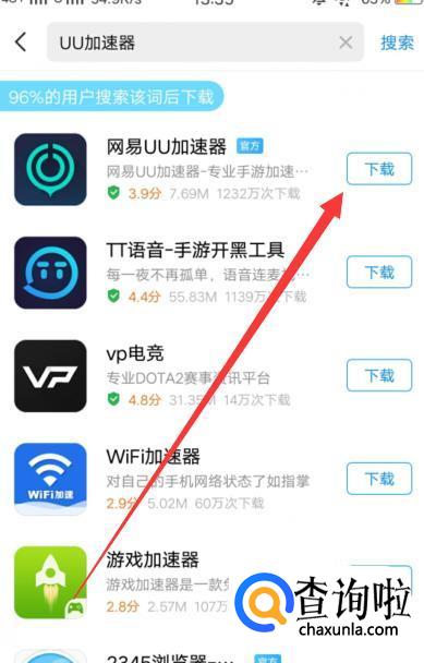 进入之后,搜索“UU加速器”,将其下载并安装,如图所示。
