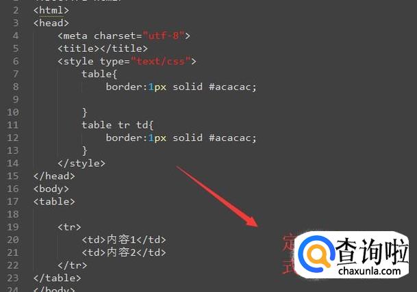 然后我们在html中定义一个表格,并且给表格设置边框,如下图所示