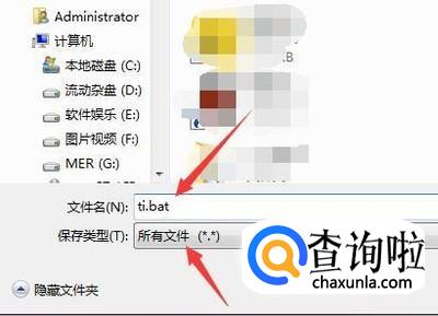 接下来点击关闭按钮,点击保存,在保存对话框中选择保存类型为所有文件,再输入文件名,文件名后加上“.bat”,也就是保存成批处理文件。