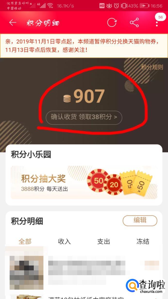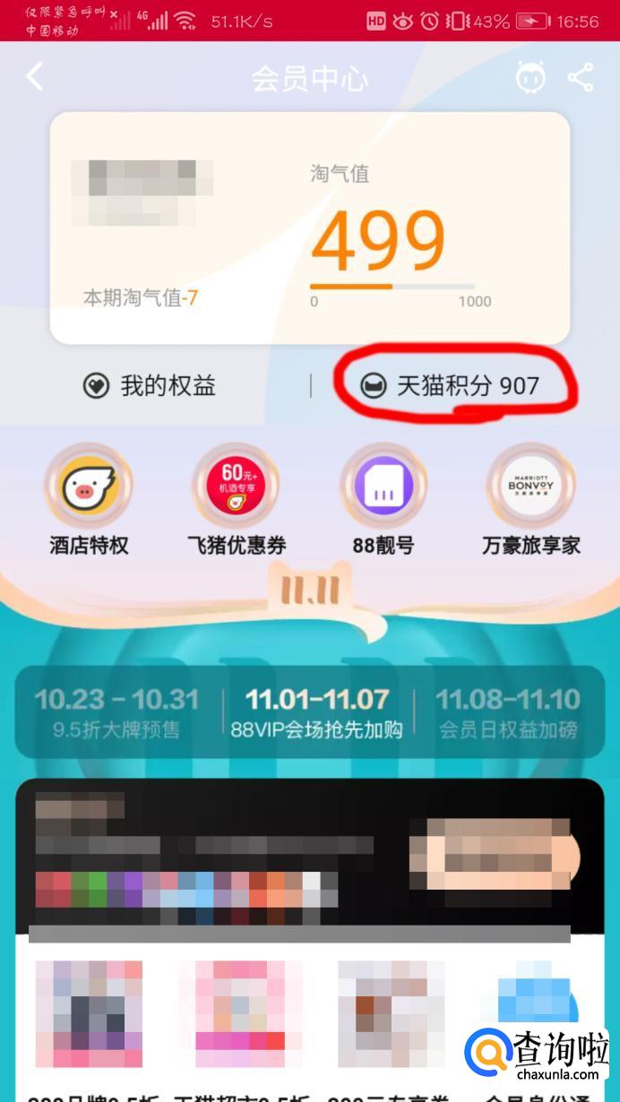 进入界面就看到了淘宝号的天猫积分了。
