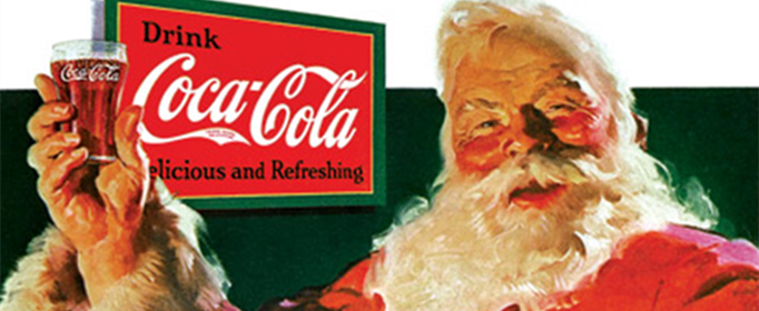 1931年,面对冬天里不断下滑的业绩,可口可乐开始在报纸、杂志上疯狂投放圣诞广告。可口可乐聘请天才商业插画家Haddon Sundblom为可口可乐创作了圣诞老人形象——这位身着红白色衣服,带有亲切笑容,圆脸颊的圣诞老人脱下帽子,手持可口可乐,念出了可口可乐1929年推出,迄今为止最著名的广告语“The Pause That Refreshes(享受清凉一刻)”
