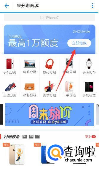 在来分期商城,需要借款,点击“立即借款”,需要购物,选择自己喜欢的产品进行分期购买。