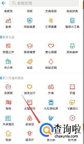 进入全部应用页面,找到第三方服务应用,点击“来分期”