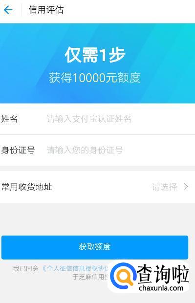 接着需要对信用进行评估,输入姓名以及身份证号进行评估