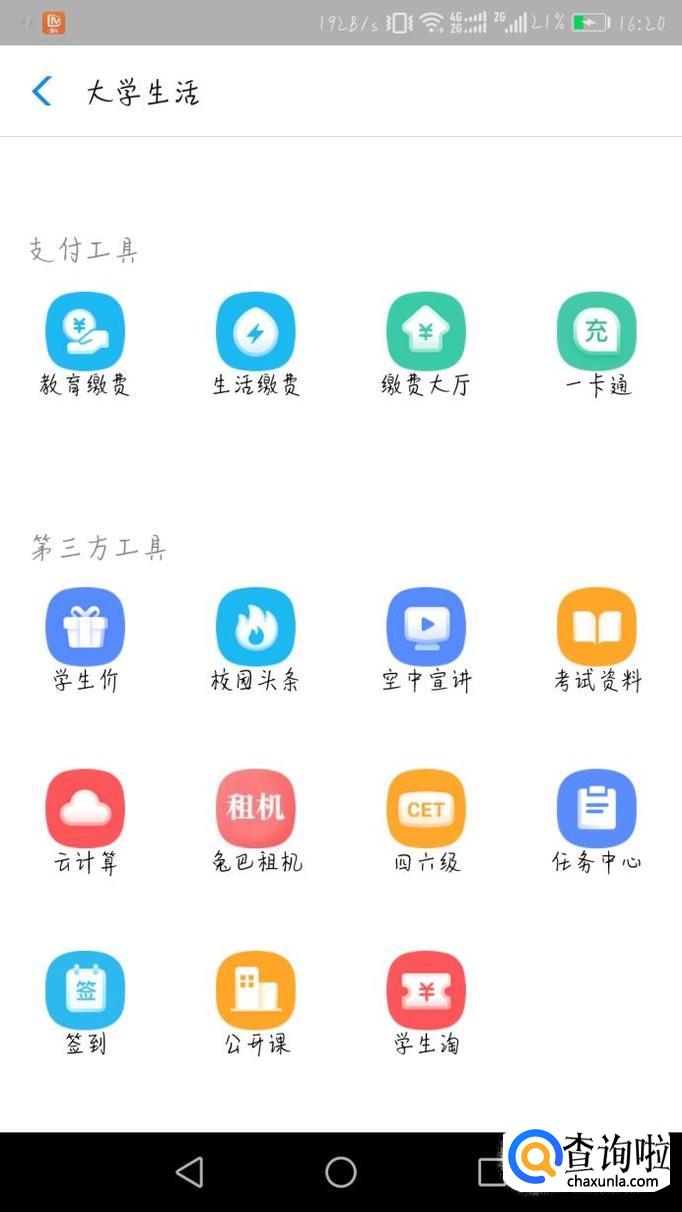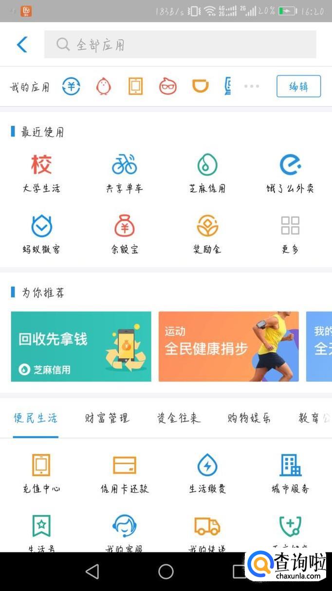 首先打开手机支付宝,然后点击图1中的“更多”,然后进入图2页面,然后点击“校园生活”。