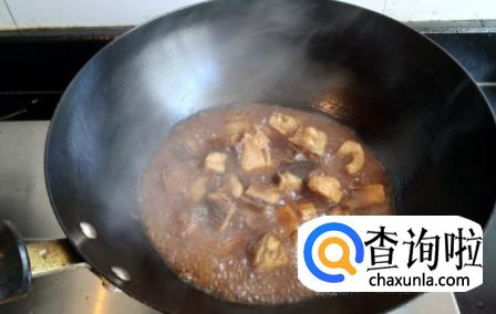 接着我们加入一点水在锅里,如果你喜欢吃的咸就可以在加点盐,因为干咸鱼本来就比较咸,所以要注意加适量的盐。