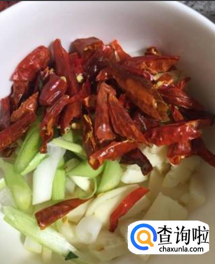首先,我们把葱姜蒜以及干辣椒丝洗干净,然后全部切好装盘备用。