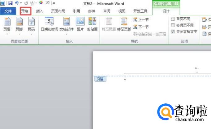 页眉处于编辑状态,之后我们点击工具栏上面的开始;