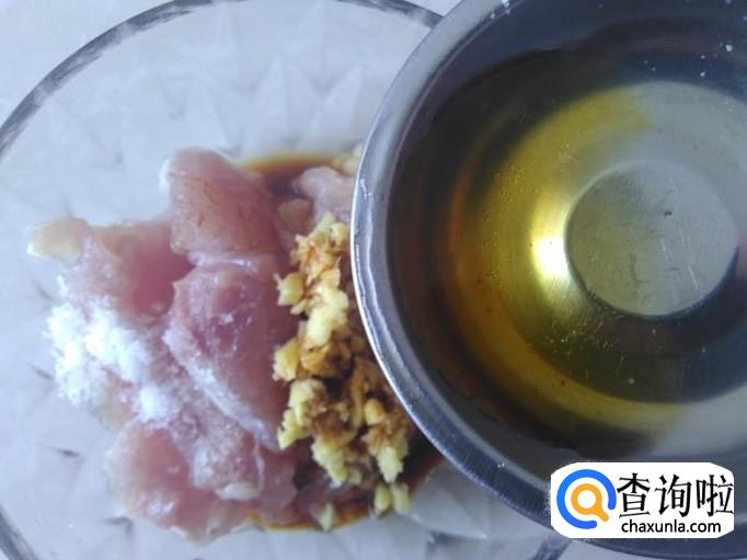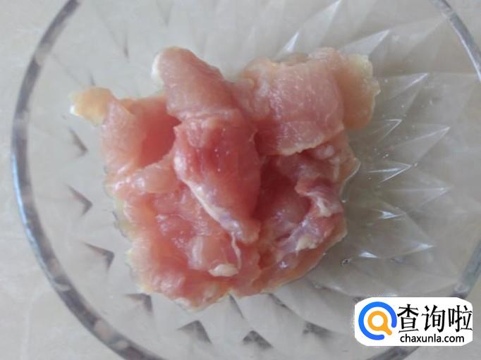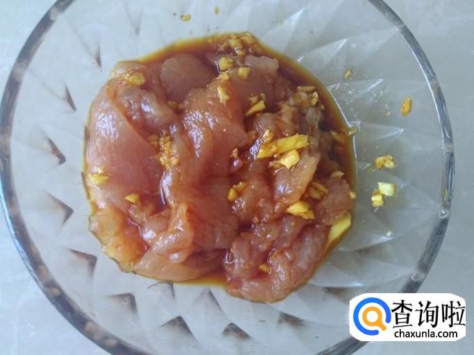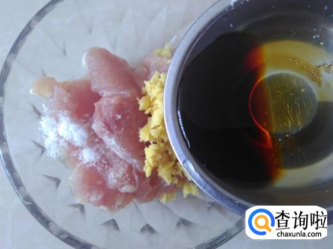 瘦肉切成片加盐、姜蓉、生抽。