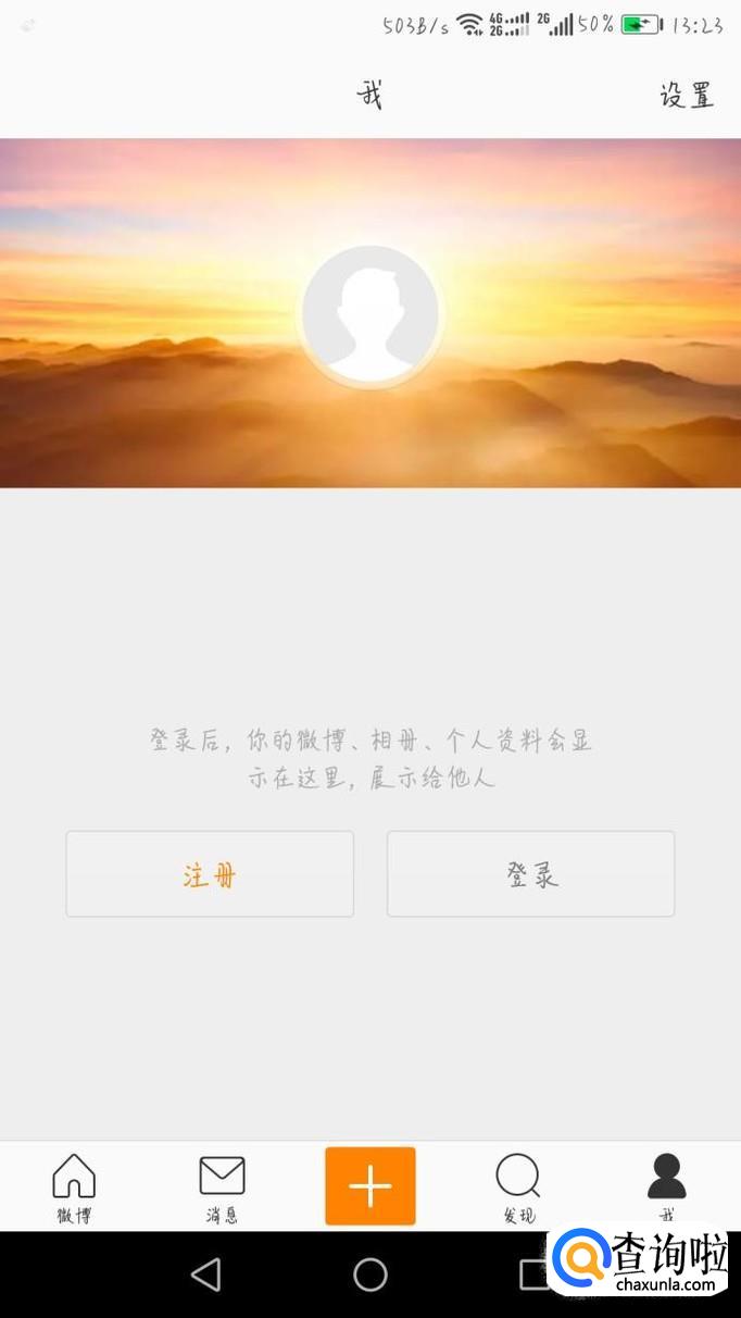 打开手机新浪微博,登录微博账号,没有的可以注册一个。