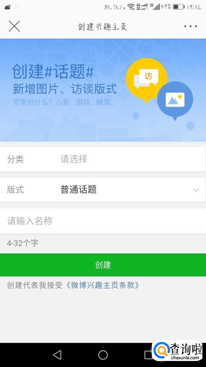 然后点击创建话题