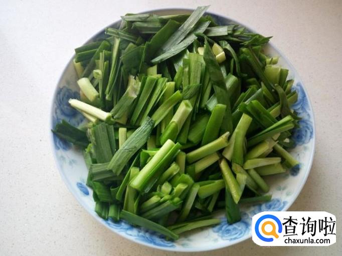 韭菜用水清洗干净,控干水分,切成寸段,装盘备用。