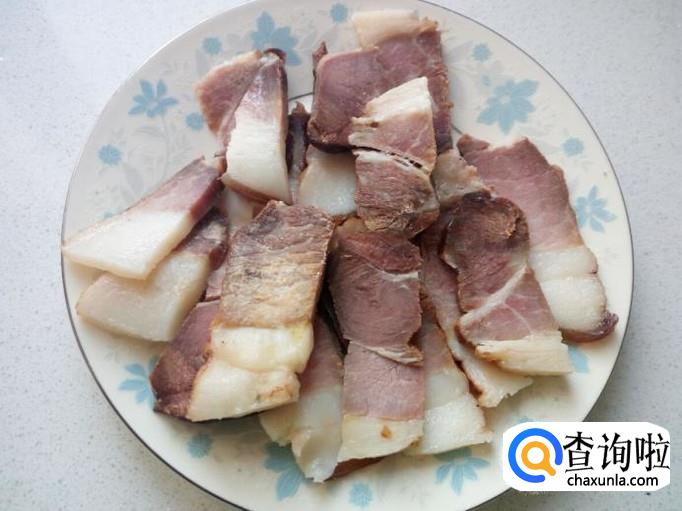 腊肉切成0.3公分左右厚的片,大小根据个人喜好。