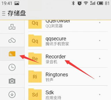 6、进入到手机的内存中,然后找到一个录音机的文件,并进行打开recorder。