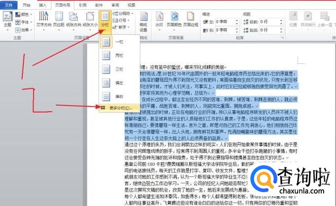 接着点击分栏,选择更多分栏。如图。