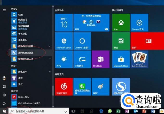 如图所示,拖动右侧垂直滚动条。点击"搜狗高速浏览器"项,用于访问无线路由器WEB管理页面。