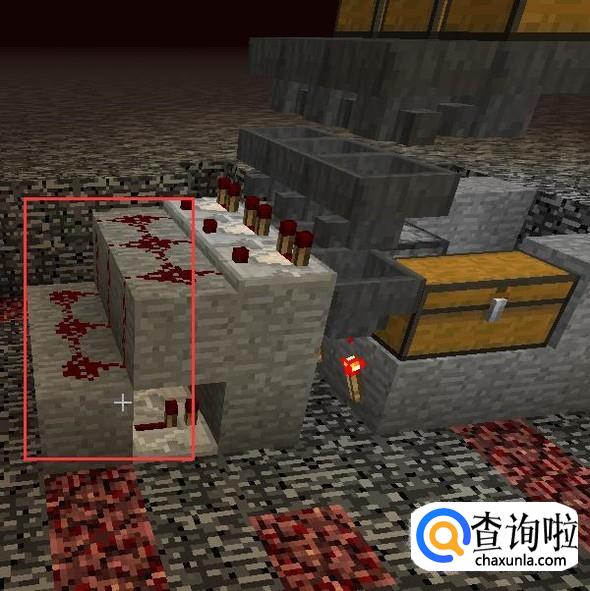 然后用石头遮挡住红石中继器,并且石头上方都铺上红石。