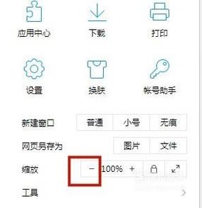 如果你要缩小浏览器页面只要点击缩放右侧的“-”,如下图所示。