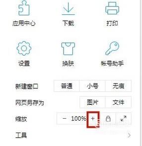 如果你要放大浏览器页面只要点击缩放右侧的“+”,如下图所示。
