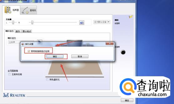 最后勾选“禁用前面板插孔检测”,然后确定即可。