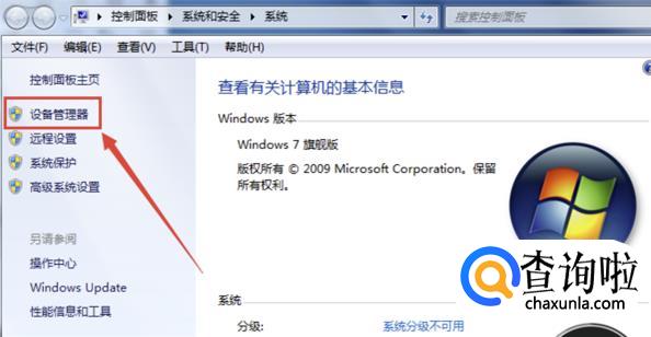 在属性的页面中找到“设备管理器”,然后点击进入。