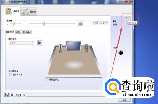 当我们进入Realtek高清晰音频管理器界面后,这时要点击右上角的禁用插孔设置图标。