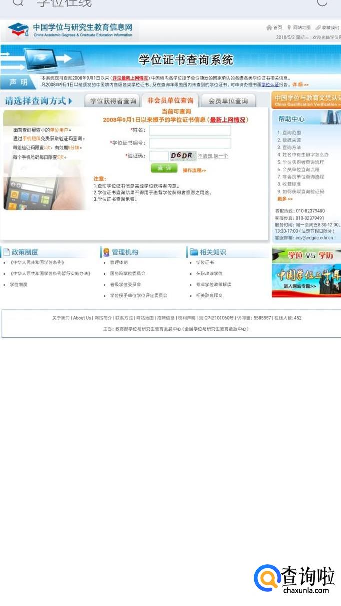 在查询的页面我们看到,网站提供的学位证信息查询方法有三种。第一种是学位获得者本人查询,学位获得者本人通过实名注册认证成功之后,即可免费查询到本人所获得的学位证书信息。