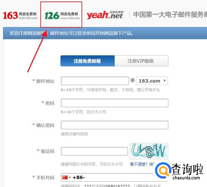 点击进入“注册免费邮箱”,我们可以看到如下界面。找到“126邮箱”。