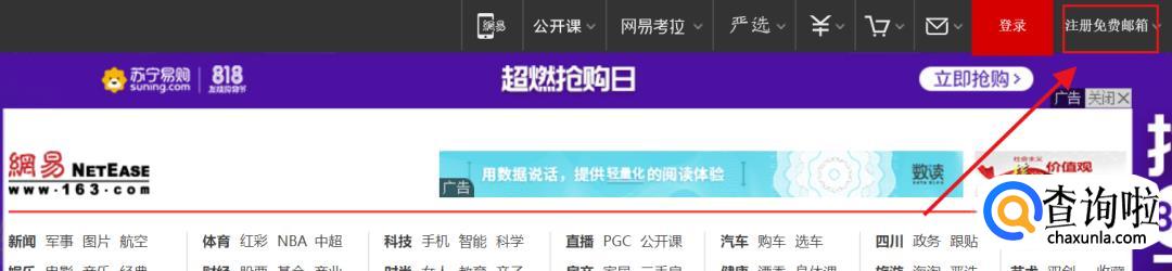 点击打开“网易”官网,我们可以看到“网易”的主页,在主页中,我们找到“注册免费邮箱”。