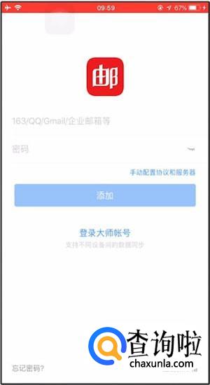 对于第一次运行此软件的手机而言,此时将出现“添加邮箱” 的新页面。在登陆栏中填写自己的126邮箱账号,在其下方密码栏填写对应的邮箱密码。