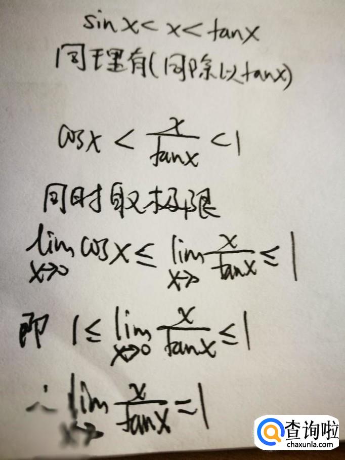 同理得出x/tanx的极限如下。