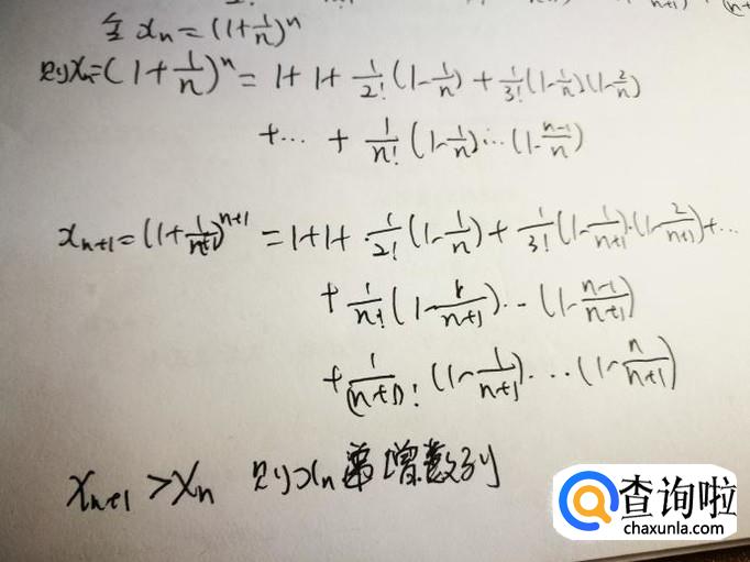 我们使用数列极限的判断方法判断e的存在。首先,判断数列x_n=(1+1/n)^n是递增数列