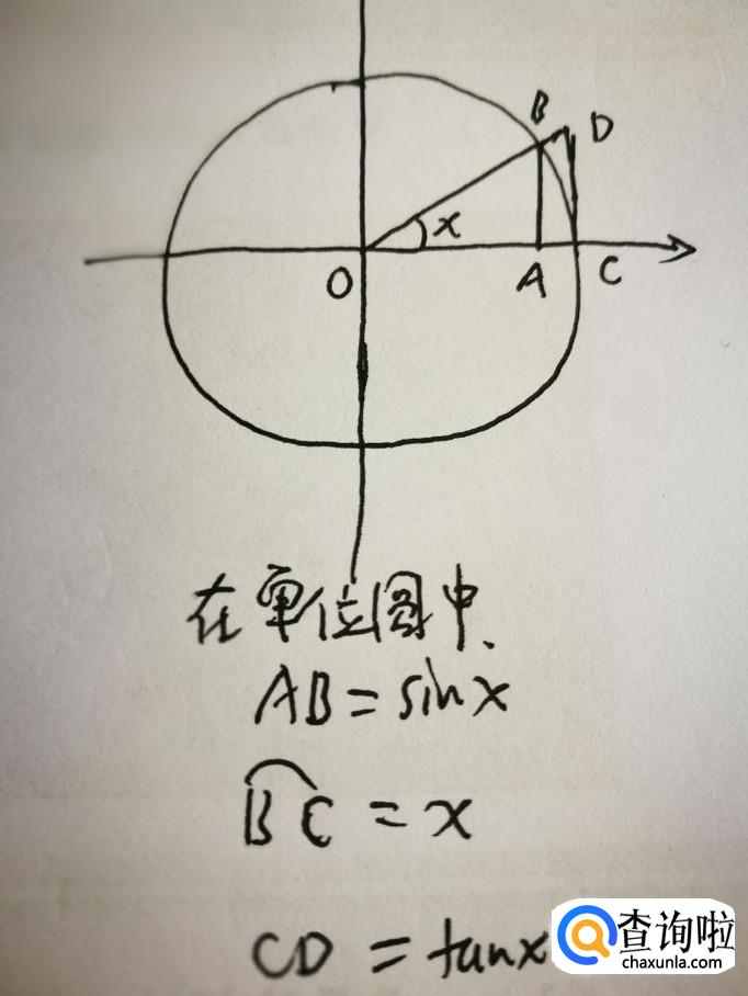 第二个极限,关于圆弧的以直代曲的sin(x)、x以及tan(x)在x趋近于0的情形。