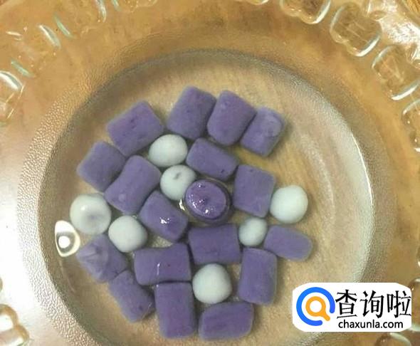 将糯米团子水煮,漂起来即可捞出来。用冷水浸泡10分钟口味更佳。