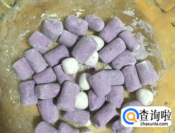 用勺子或者搅拌机将紫薯弄成泥状,然后混合糯米粉(代替木薯粉),搅拌均匀即可。