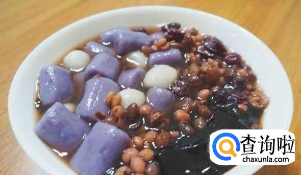 2个紫薯,红豆,薏米一小把,糯米粉80克,凉粉(黑)25克。适量蜂蜜,蔗糖。