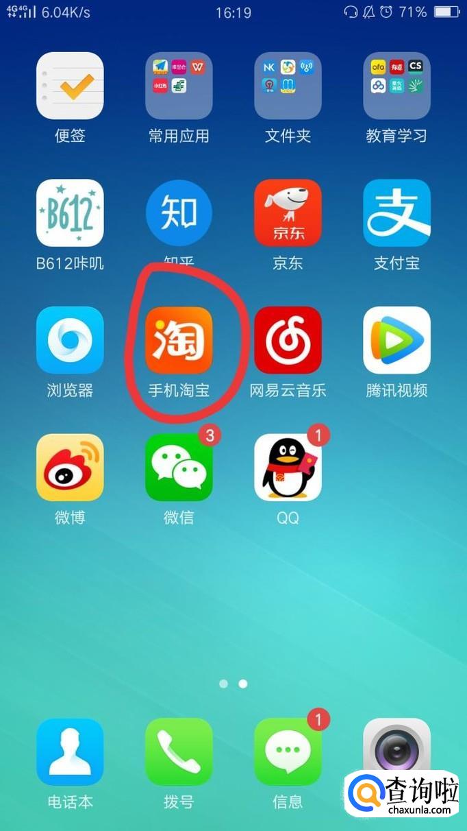 首先,我们打开手机,找到淘宝的图标,然后将其点开。