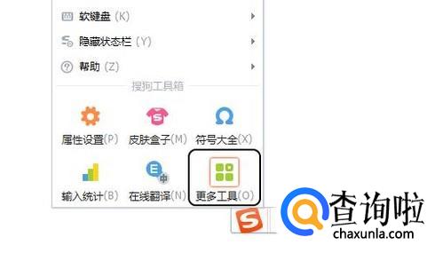 当然这里如果失灵的话,点击搜狗输入法状态栏最前面的logo,见下图一...然后依次点击“更多工具”-“属性设置”