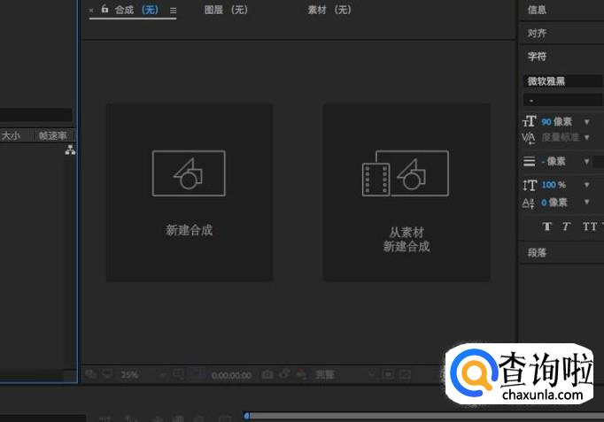 打开电脑中的AE软件,点击“新建合成”来创建一个新的合成文件。