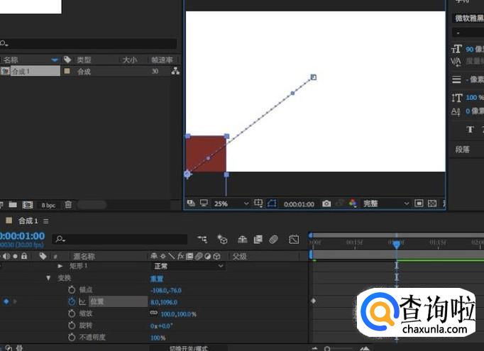 合成创建完成之后,我们随意绘制一个简单的动效来举例。