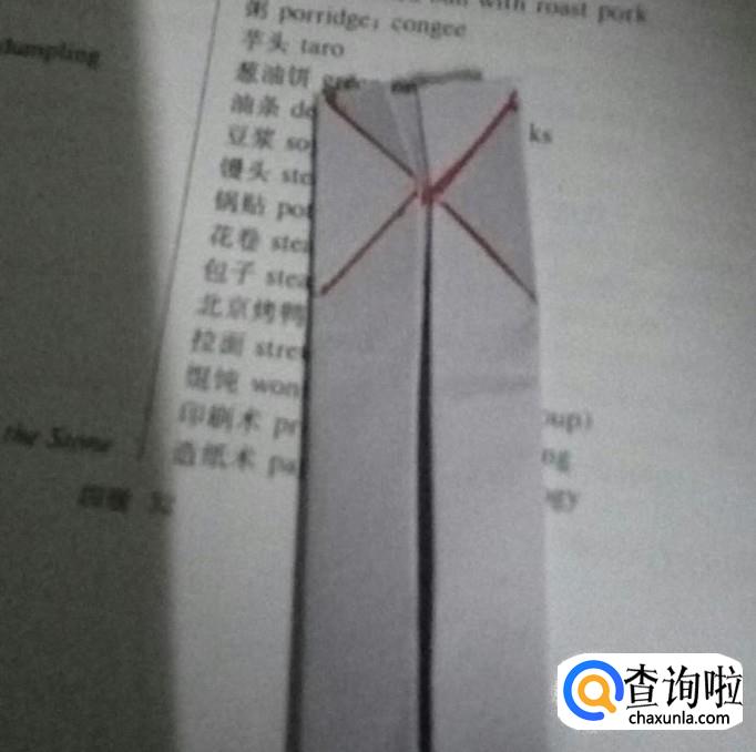 首先按照中线把两边往中间折。要折两次。要用力折一下,不然折痕不明显,这里小编为了方便大家理解,要红笔画出来了哦!