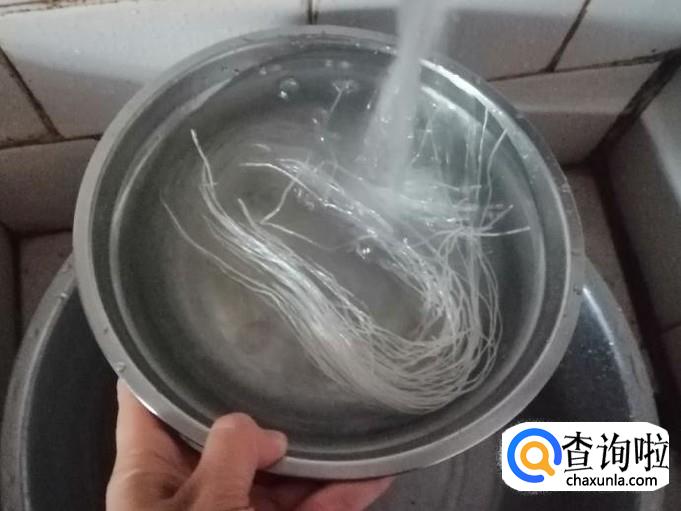 取适量粉丝,最好也是用清水冲洗一下。大多人认为粉丝可以直接用,这一环节都自己看着办吧,我都是冲洗怕不干净,洗好后待用。