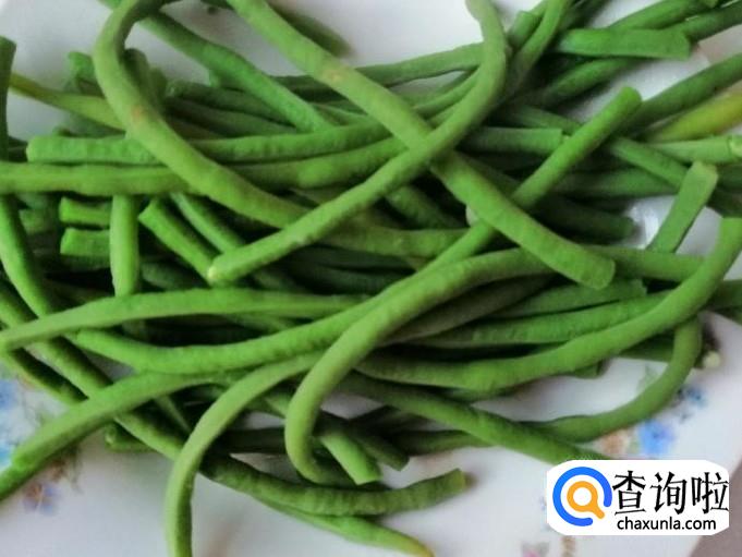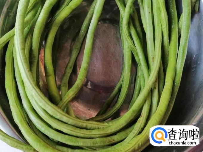 选用鲜嫩的长豆角,先把豆角放入洗菜盆冲洗,为了防止蔬菜上有农药残留,我们洗净后稍泡会豆角,然后再过清水,折成长短差不多的段待用。
