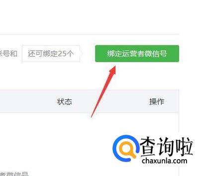 然后再点击右侧的绑定运营者微信号,直接在这里点击就可以进行绑定了,这个方法也是相对简单的。