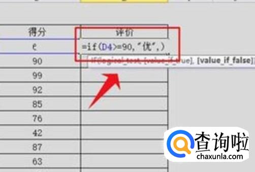 然后在需要判定的单元格内输入=if,然后把判定条件写入函数,比如=IF(D4>=90,"优秀",IF(D4>=80,"良")依次类推).