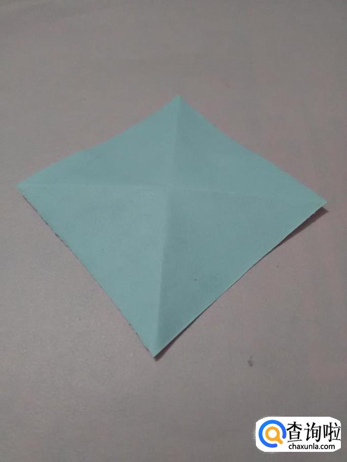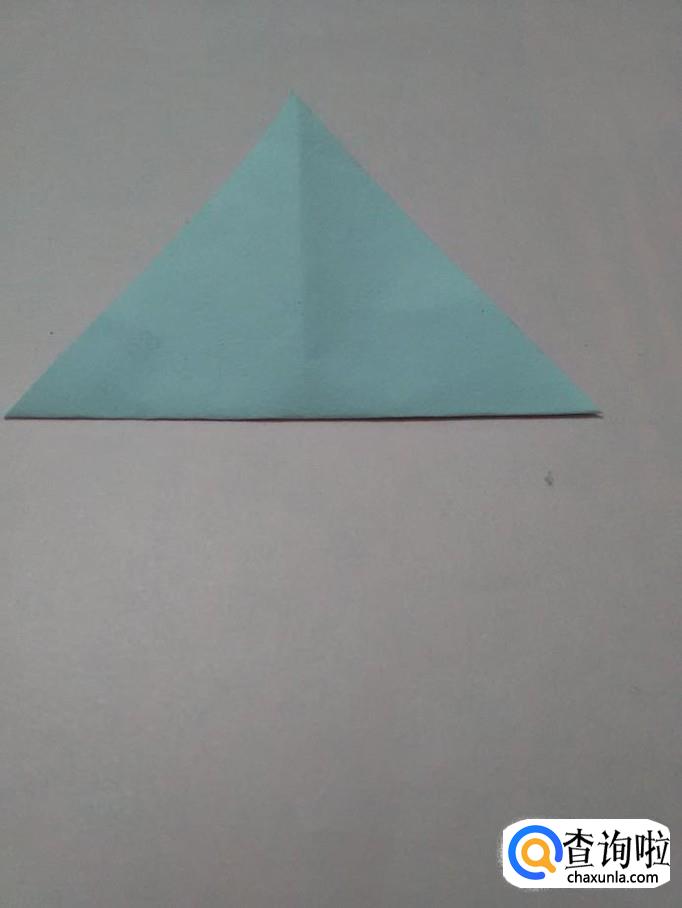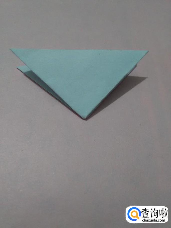 两手捏着底边的中点,往中间挤成如下的三角形。